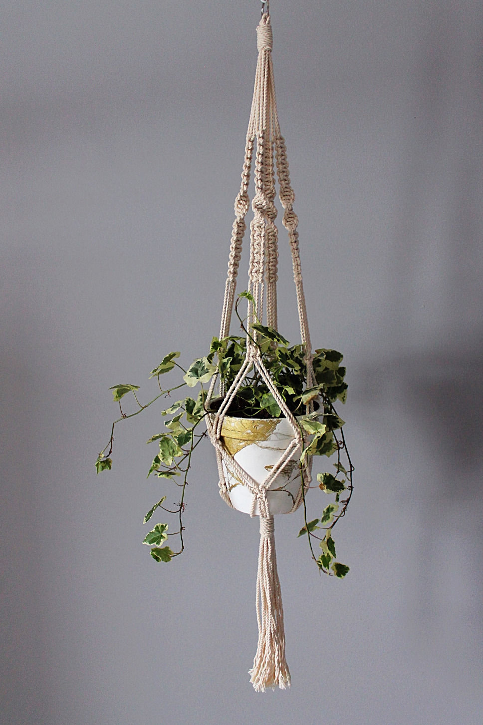 Macrame plant hangers handmade with high quality, Canadian, 100% natural cotton rope. Available in a variety of colours, styles, and sizes.